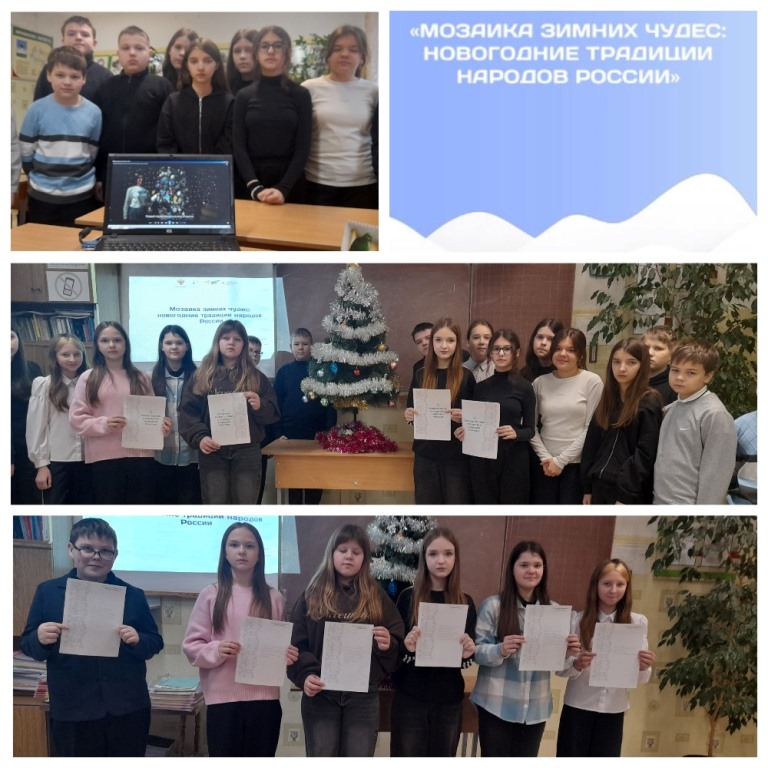 В рамках будущего Года единства народов России и в преддверии Нового года в школе с 1- 6 классы прошли интересные внеклассные мероприятия «Мозаика зимних чудес: новогодние традиции народов России», посвящённые зимним праздникам и новогодним традициям народов России.