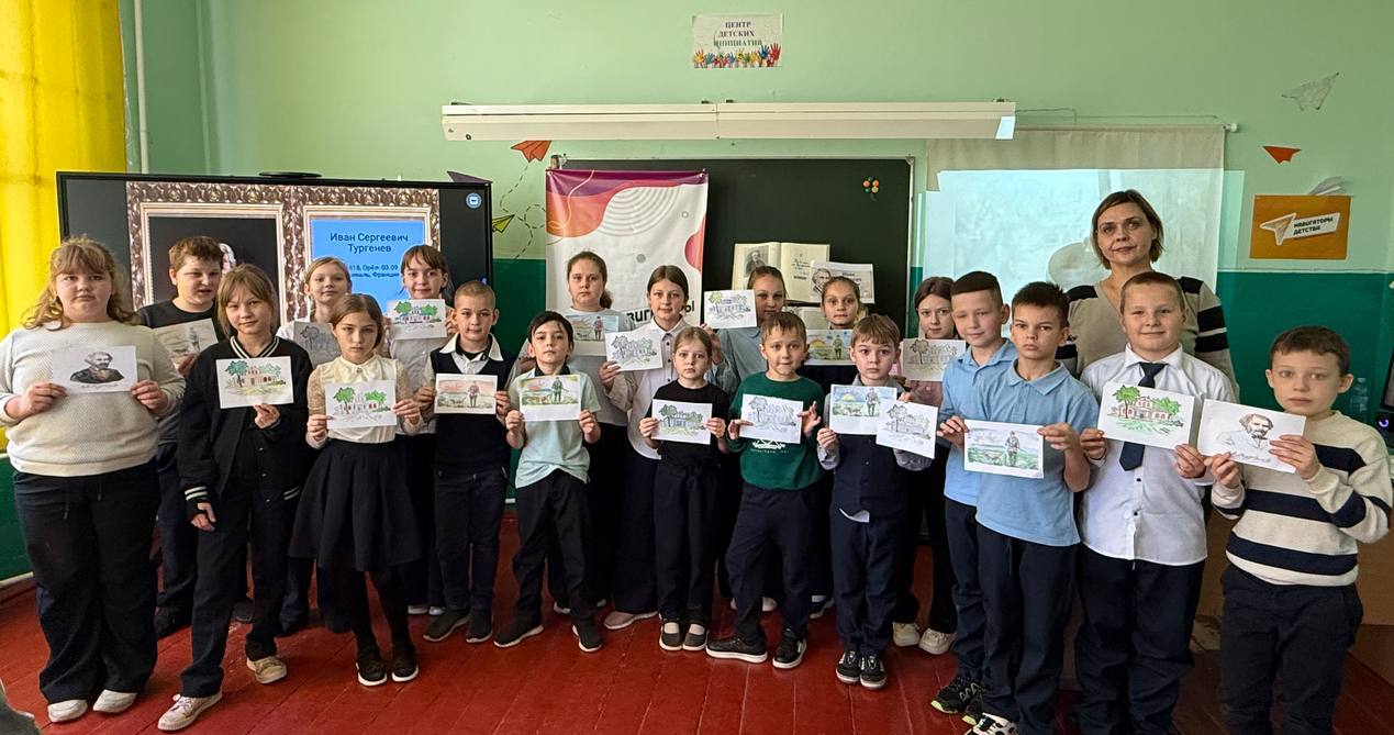 Советник директора по воспитательной работе Смолякова В. В. совместно с педагогом-библиотекарем Герштанской Т. Г. подготовили насыщенную программу для учащихся 3-х классов. Программа включала в себя выставку книг и иллюстраций, литературный час с рассказыванием сказок Тургенева и выставку детских рисунков, изображающих героев и пейзажи из произведений писателя.
