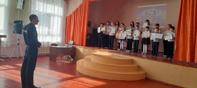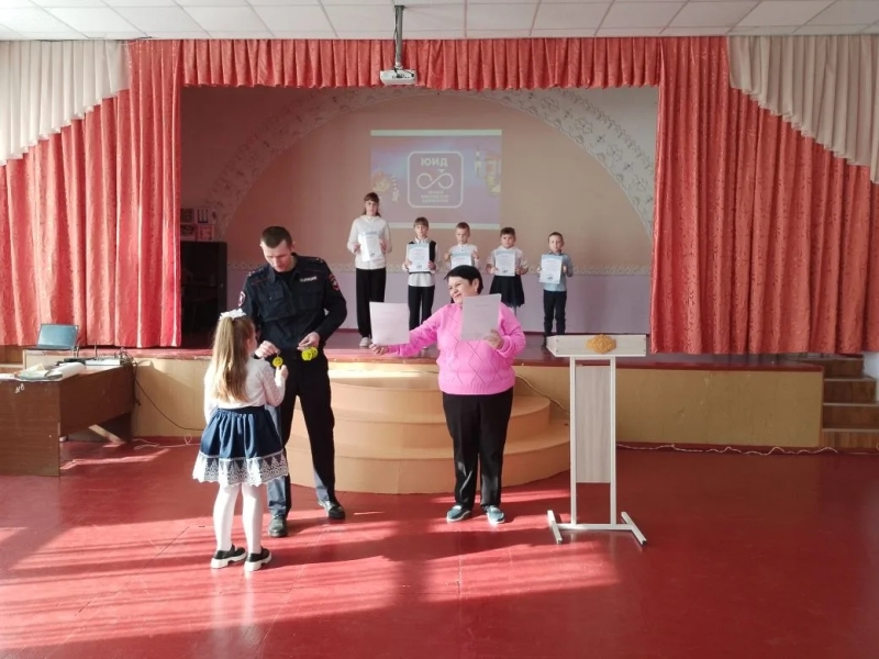 26 марта прошло торжественное награждение. Инспектор по пропаганде БДД отделения Госавтоинспекции ОМВД России по Глазуновкому району старший лейтенант полиции Заиграев Иван Николаевич и руководитель отряда «ЮИД» Шорина Ирина Петровна вручили Грамоты и памятные подарки победителям и призёрам конкурса. Иван Николаевич поздравил ребят и сказал им напутственнные слова. Дети в свою очередь пообещали продолжить изучение Правил дорожного движения и принимать самое активное участие в школьных конкурсах по данной тематике.