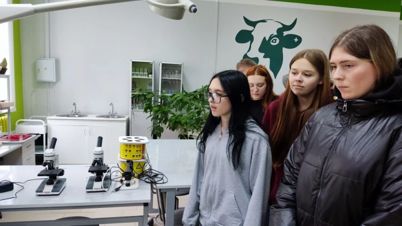 Преподаватели техникума Потанина Валентина Ивановна, Ветрова Елена Петровна, Никитина Татьяна Владимировна, советник директора по воспитанию и взаимодействию с детскими общественными объединениями Шепелева О.С. рассказали школьникам об истории учебного заведения, о профессиях и специальностях сельскохозяйственной отрасли, которые можно освоить при поступлении в данное учебное заведение, показали современные мастерские («Эксплуатация сельскохозяйственных машин», «Геномная инженерия. Агрономия», «Сити-фермерство», «Ветеринария», «Сельскохозяйственные биотехнологии»), учебное оснащение кабинетов и лабораторий.