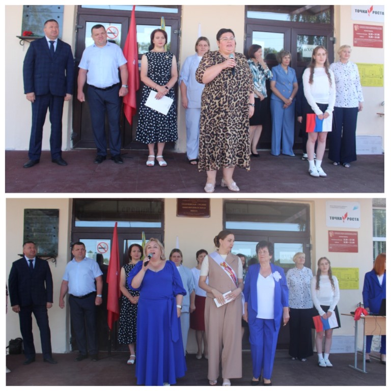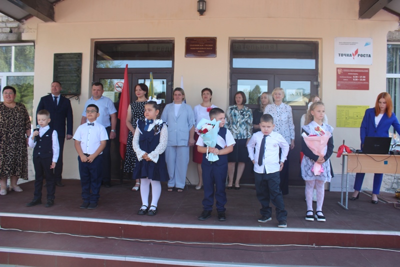 Со словами приветствия к присутствующим обратилась и. о. директора школы И.Р. Костомарова. Обучающихся, педагогов и родителей поздравили гости праздника: заместитель главы администрации Глазуновского района Т.В. Мищенко, начальник управления образования администрации Глазуновского района Е.А. Денисова, член Правительства Орловской области - руководитель Департамента экономического развития и инвестиционной деятельности Орловской области С.Ю. Антонцев, индивидуальный предприниматель Глазуновского района А.А. Шишкин.