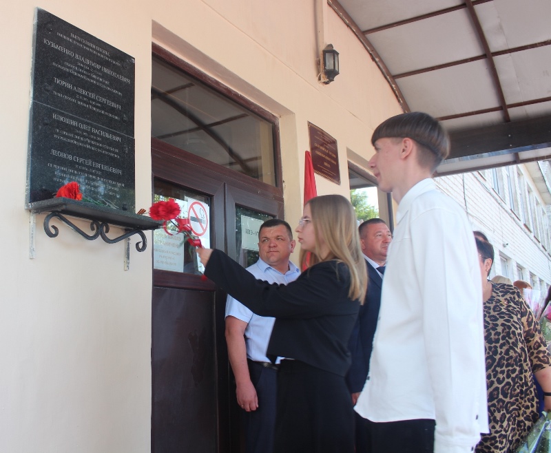 Одиннадцатиклассники в память о выпускниках школы, погибших в локальных конфликтах, возложили цветы к мемориальной доске.