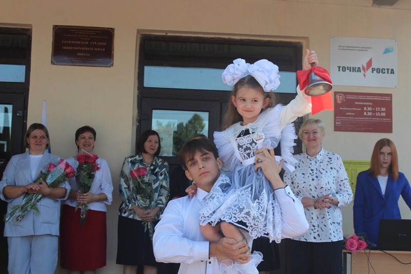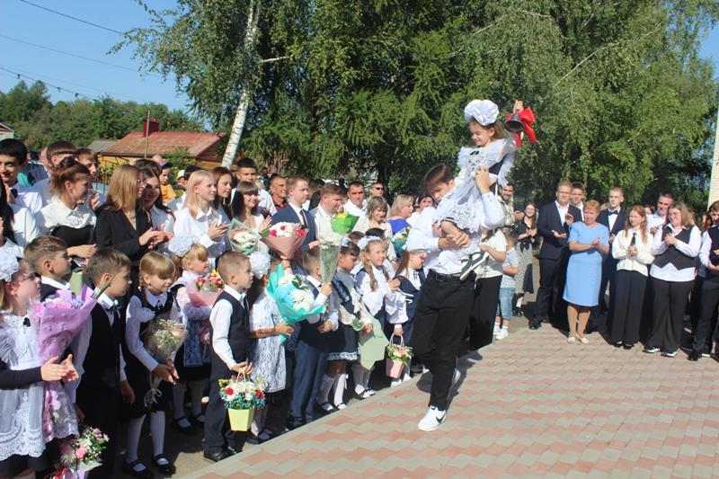 О начале нового учебного года оповестил всех школьный звонок, который подали первоклассница Анастасия Степанова и одиннадцатиклассник Егор Белевский.