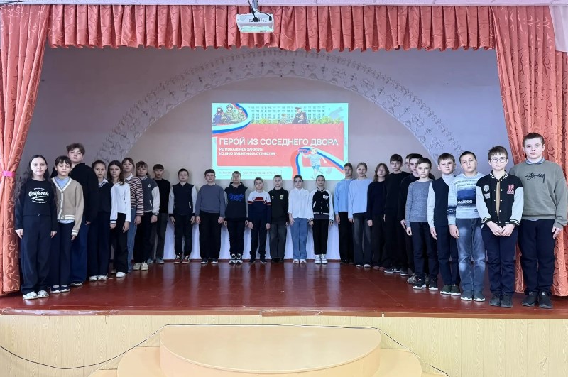 16 февраля 2026 года в школе в рамках курса внеурочной деятельности «Разговоры о важном» в 1 – 11 классах прошло занятие «Герой из соседнего двора», приуроченное ко Дню защитника Отечества в соответствии с учебно - методическими комплектами (сценарии, методические рекомендации и презентации), размещенными на сайте https://разговорыоважном.рф