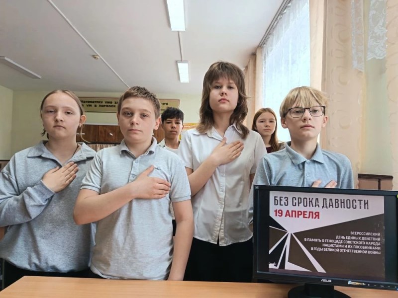 В рамках Всероссийской декады единых действий, приуроченной ко Дню памяти жертв геноцида советского народа нацистами и их пособниками в годы Великой Отечественной войны в 1 – 11 классах были проведены классные часы «Без срока давности» с целью сохранения исторической правды о преступлениях нацистов и их пособников в отношении мирных советских граждан и военнопленных красноармейцев в годы Великой Отечественной войны на оккупированной территории и формирования неприятия нацизма в любых его проявлениях.
