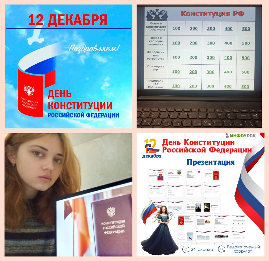 Среди обучающихся 10-11 классов прошла игра «Конституция РФ» в онлайн – формате. Школьники вспомнили, какие права и обязанности граждан закреплены в основном законе страны, полномочия президента и органов власти, кто входит в состав Госдумы и Совета Федерации, как формируются органы власти…