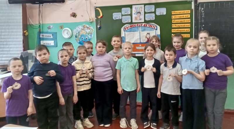 Ученики 1–2 классов отправились в увлекательное путешествие по стране Математики. Их маршрут проходил через занимательные станции: «Загадки», «Ребусы», «Город Цифр», «Разминка», «Острый глаз», «Расшифруй кроссворд», «Математические бусы». Каждая станция была наполнена заданиями, развивающими внимание, логическое мышление, воображение и интерес к миру чисел.