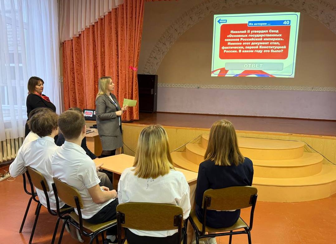 С обучающими 9 «Б» и 11 класса педагоги провели тематическую игру- викторину «Знатоки Конституции РФ». Старшеклассники активно участвовали, отвечая на вопросы, демонстрируя свои знания и интерес к правам человека и основам правового государства.